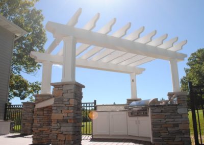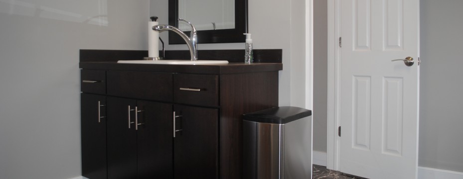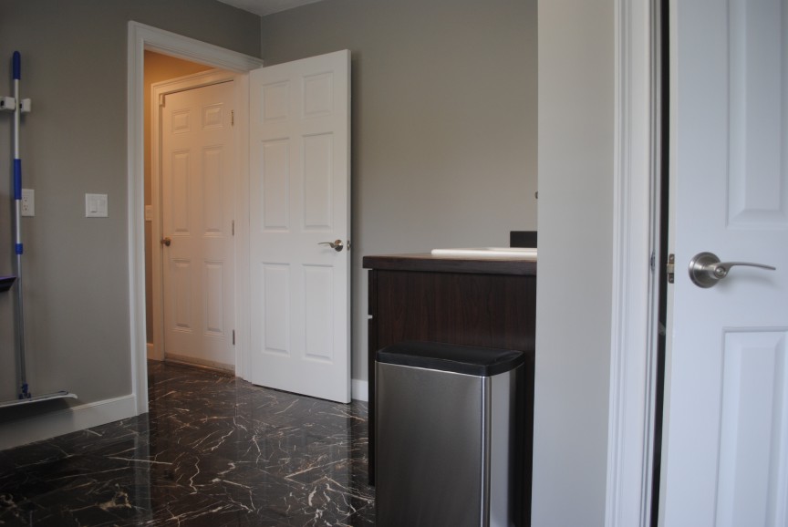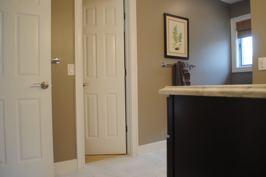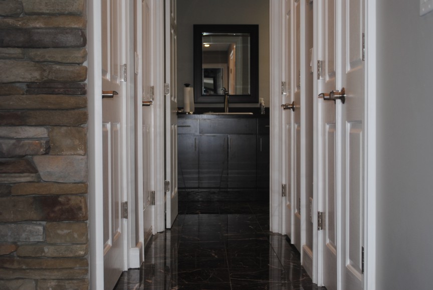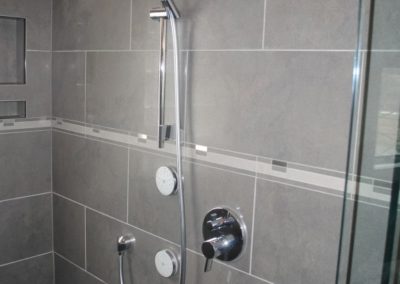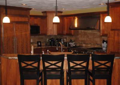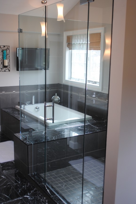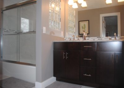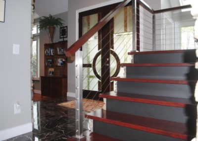 Our clients loved their spacious contemporary but were looking for a bit of a facelift, both inside and out.  What originally started as a master bathroom remodel quickly became a whole house update complete with a mahogany and glass entrance, marbled foyer, master staircase featuring custom built cherry treads with stainless steel railing system and cultured stone walls, Brazilian cherry floors for the living and dining rooms,  completely revamped guest bathroom with granite sink top and a soaring, 2-story living room fireplace with matte grey tile, cultured stone and stainless steel mantle, plus much, much more.